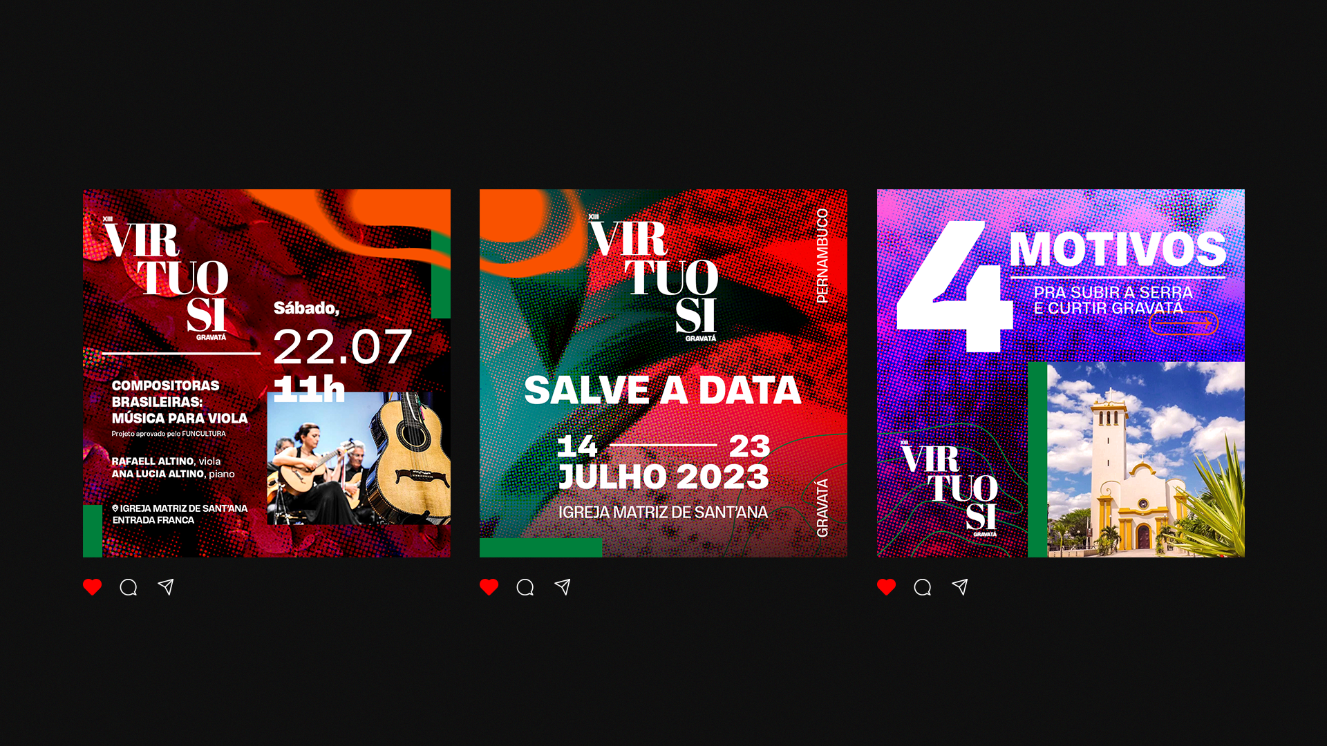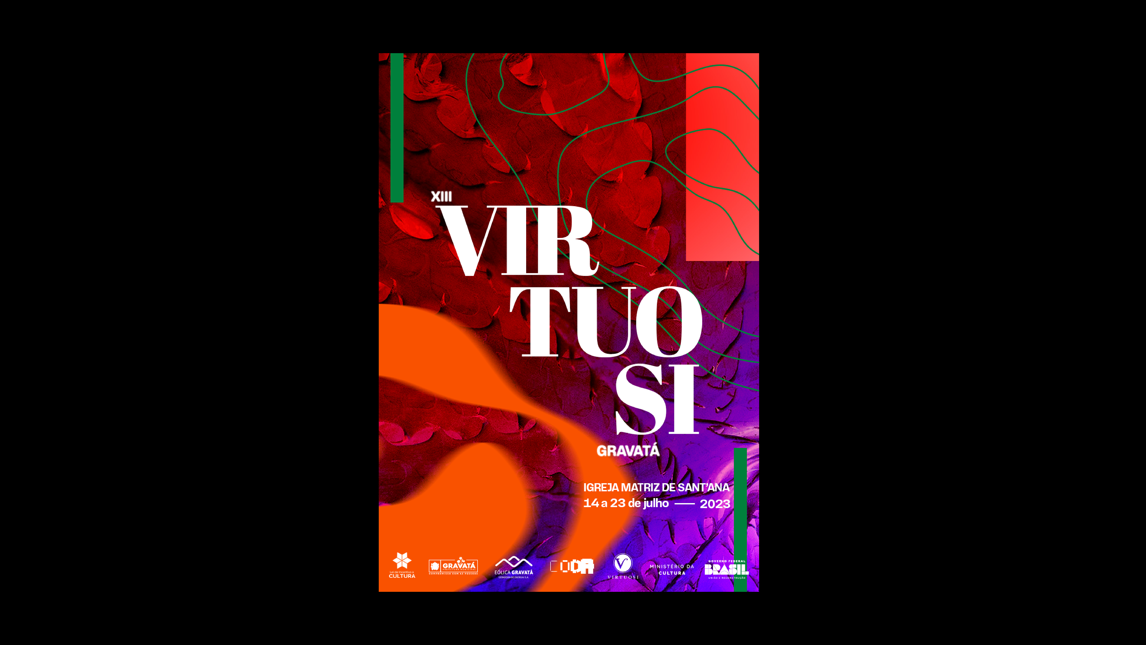 Virtuosi is a music festival from Pernambuco/Brazil, that brings artists and lectures on classical music in a virtual environment. The use of plants and rocks supported the assets used throughout the festival's visual identity.