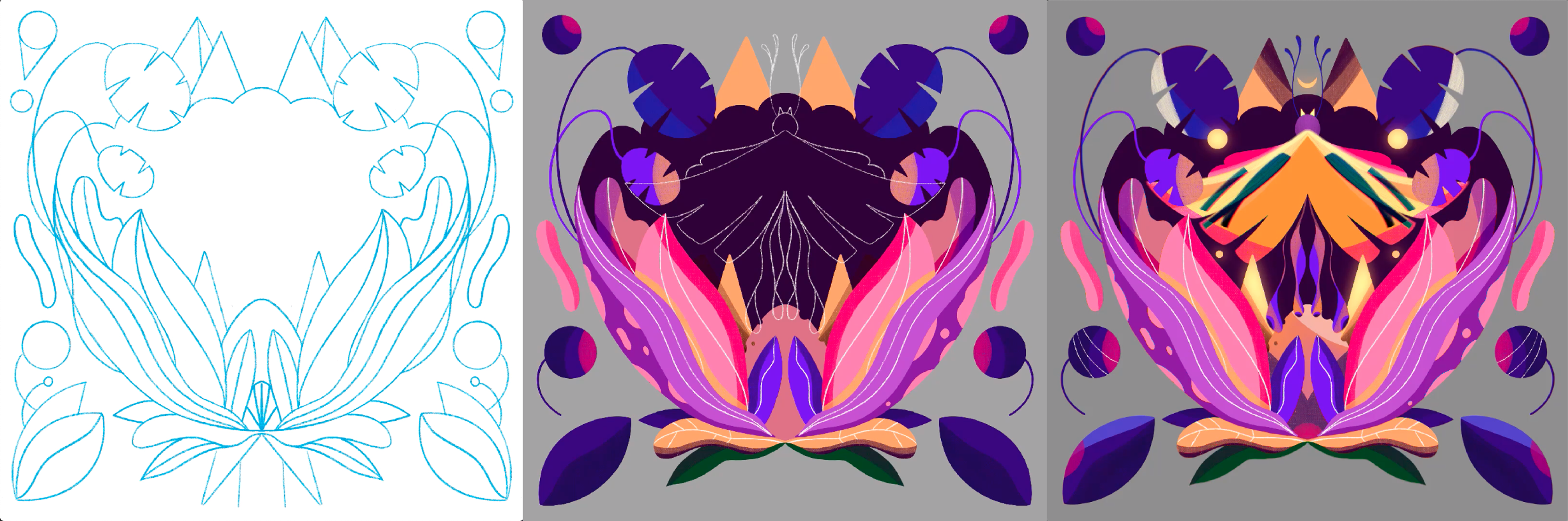 The Moth is a personal illustration project, where I decided to put into practice the use of a color palette completely delimited.